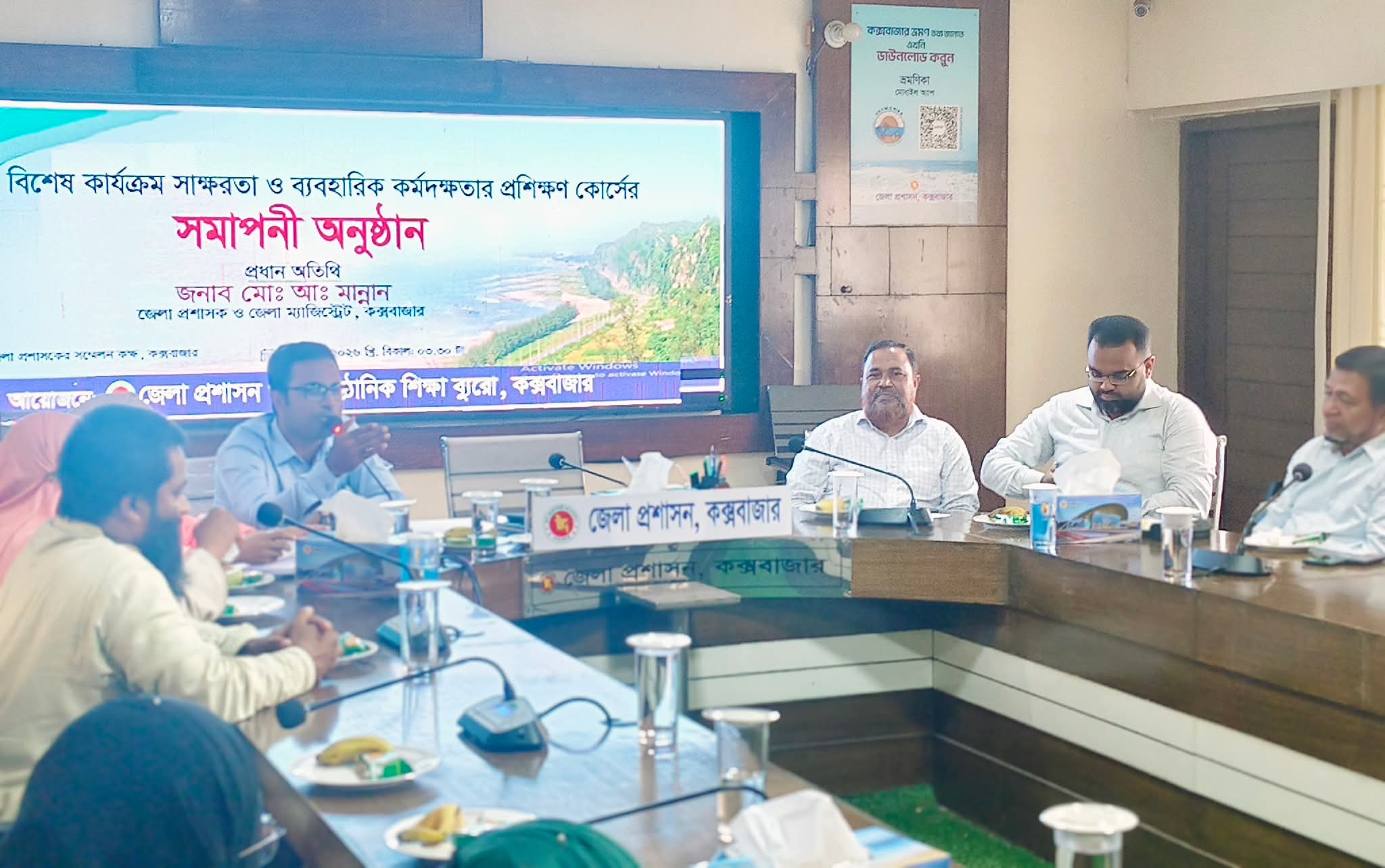 A classroom session of the “Functional Literacy and Practical Skills Training Course” under the Bureau of Non-Formal Education, implemented by the Ministry of Primary and Mass Education, has been successfully completed at the conference room of the Deputy Commissioner’s office in Cox’s Bazar.