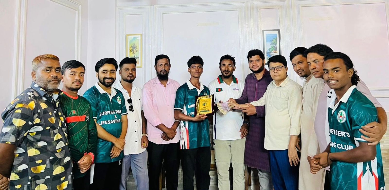 Helal Hossain, who secured third place in the junior category at the 8th National Surfing Championship held in Cox’s Bazar, was accorded a reception on Wednesday (April 8, 2026).