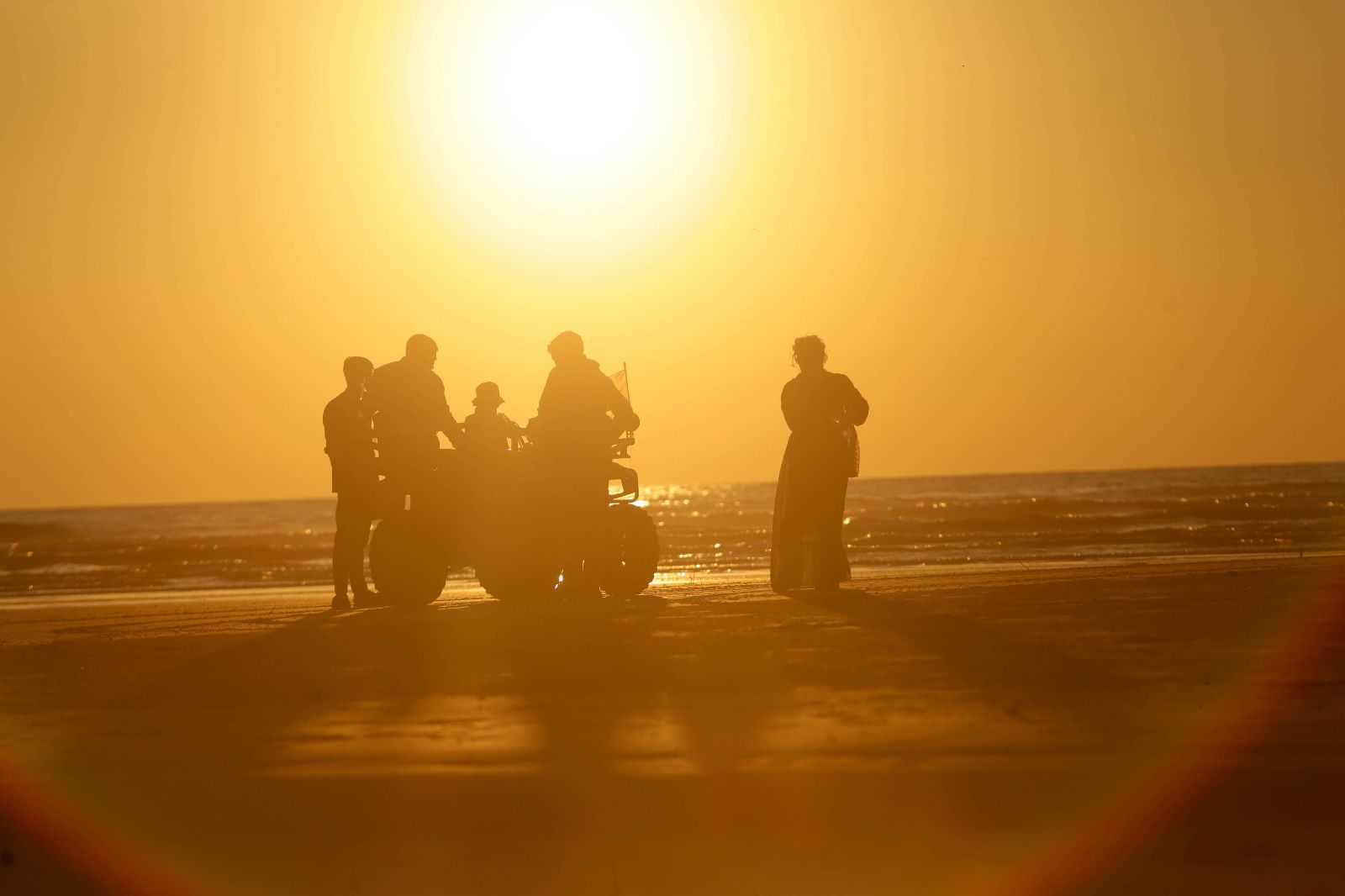 When the sun slowly sinks toward the horizon, shades of red and gold spread across the sky and the shoreline, transforming the beach into an unforgettable panorama.